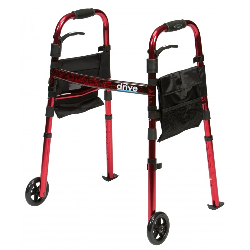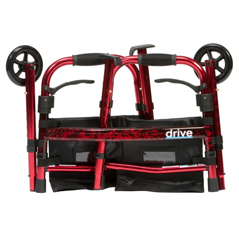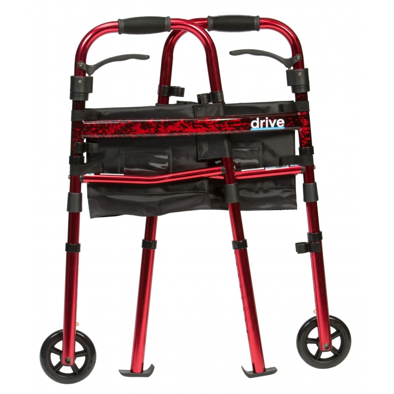 Easily folds tool free to 1/2 the size of a traditional folding walker and can be stored in the “Ready Set Go” bag provided for transportation