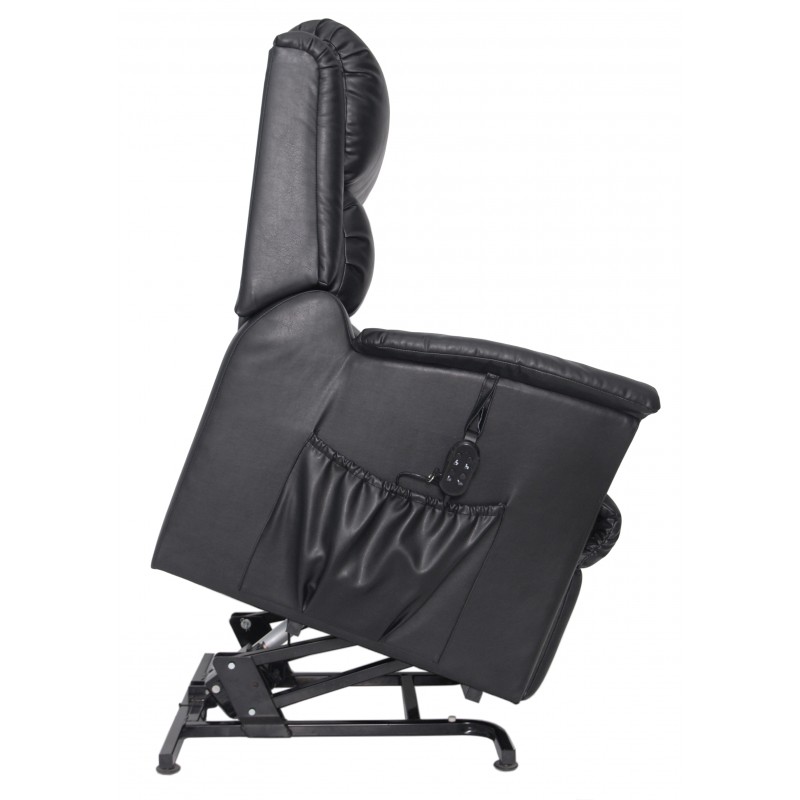 At a simple touch of a button, chair will smoothly rise and tilt user to standing position