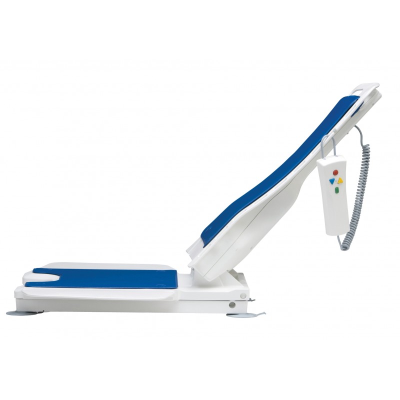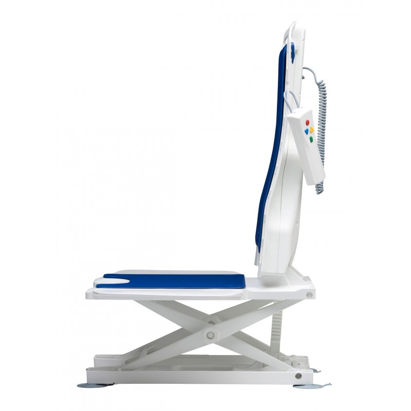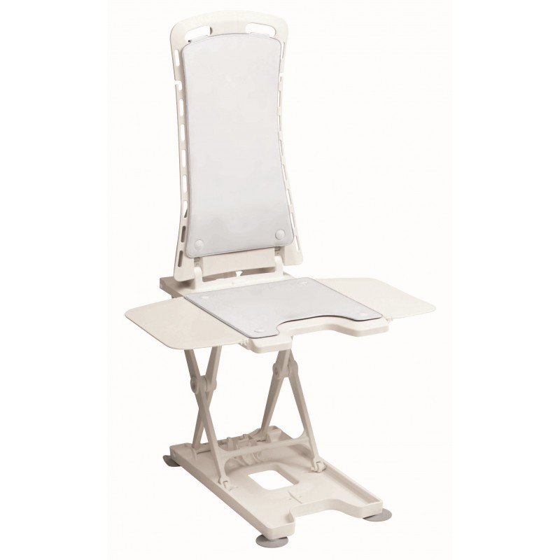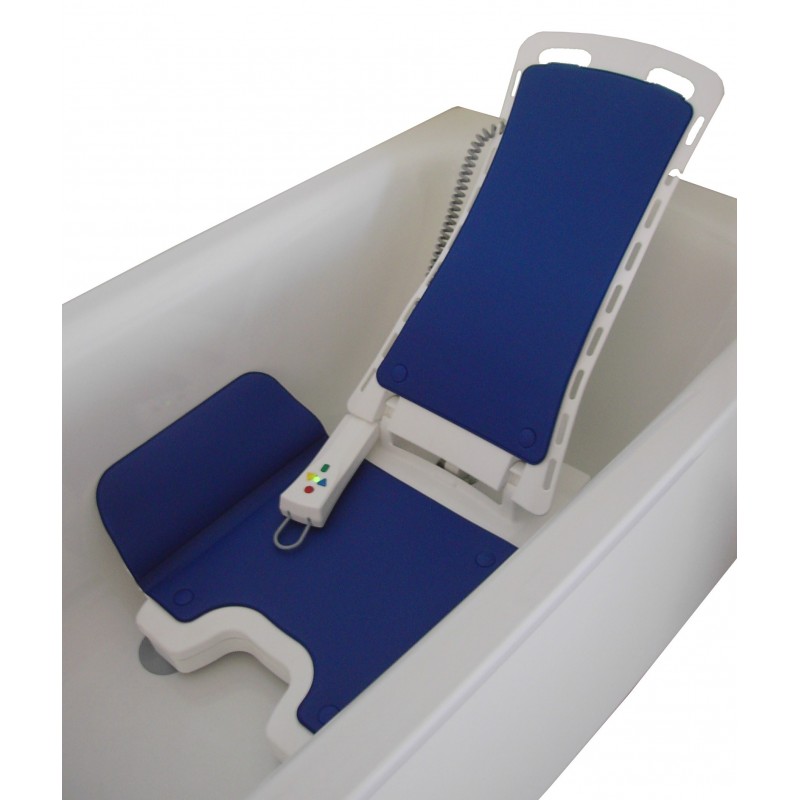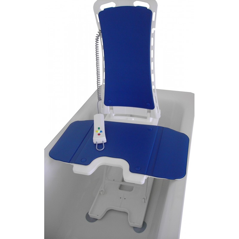 - At the touch of a button, gently lowers users with restricted mobility down to bottom of bath for bathing and relaxation then raises them to top again for safely getting out