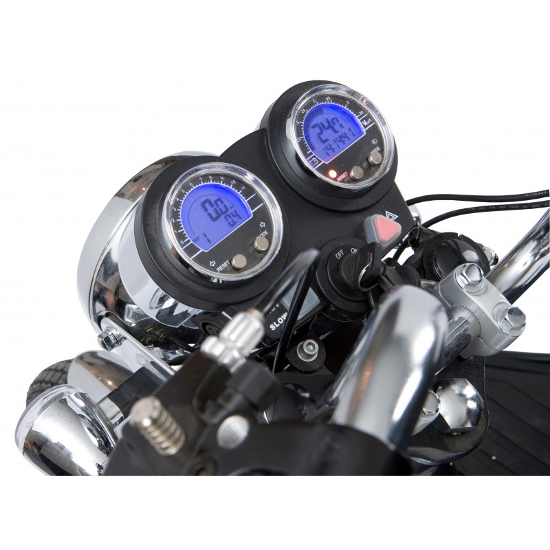 All round lighting, inc large headlight, front/rear indicators and rear brake lights to improve outdoor visibility at dusk or when dark