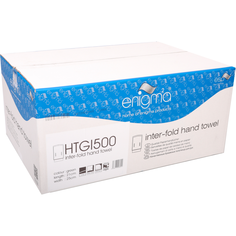 Green inter-fold hand towels are suitable for all washroom and catering environments. Green inter-fold hand towels are available in 1-ply sheets. Green inter-fold hand towels when dispensed can present the next towel ready for use reducing cross contamination.