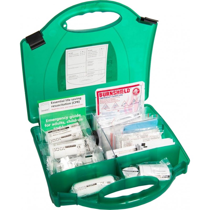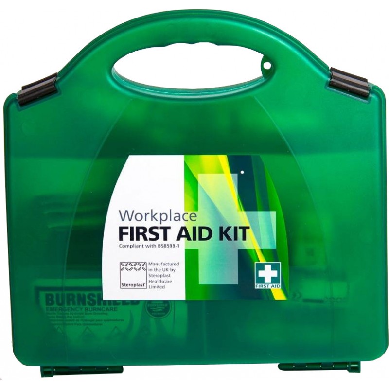 The workplace first aid kit compliant with British Standards - available in 3 sizes dependant on the size of workforce and degree of hazard. See the tables below to find out what size of kit you need for your environment.