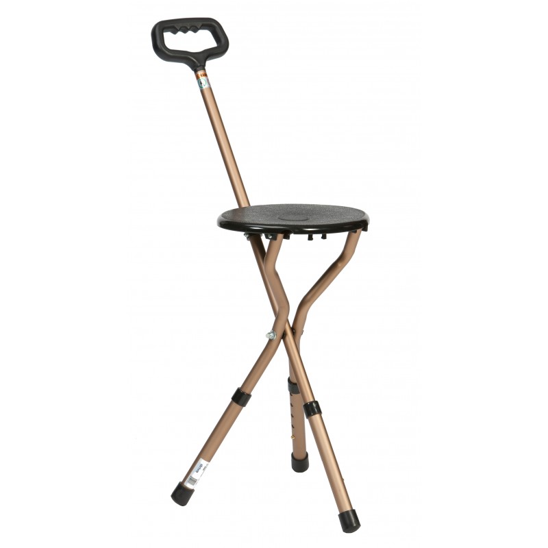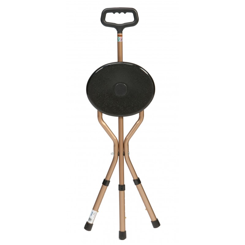 Provides a comfortable seat to rest on when open, and a sturdy support cane when closed