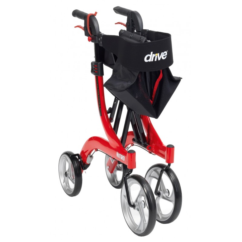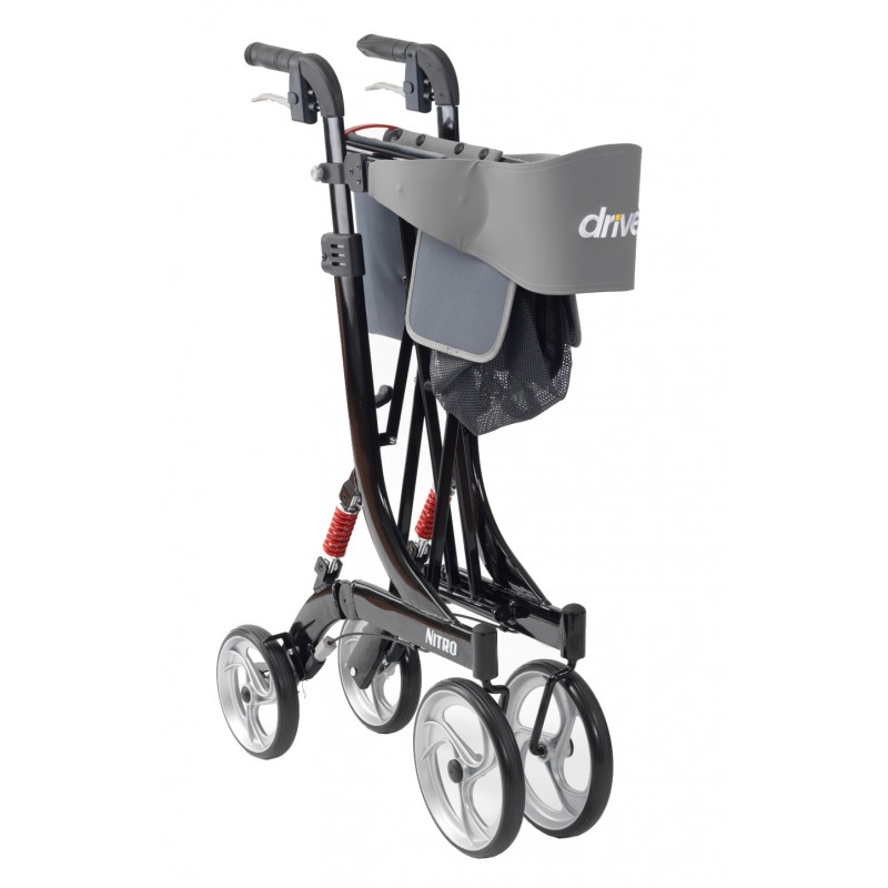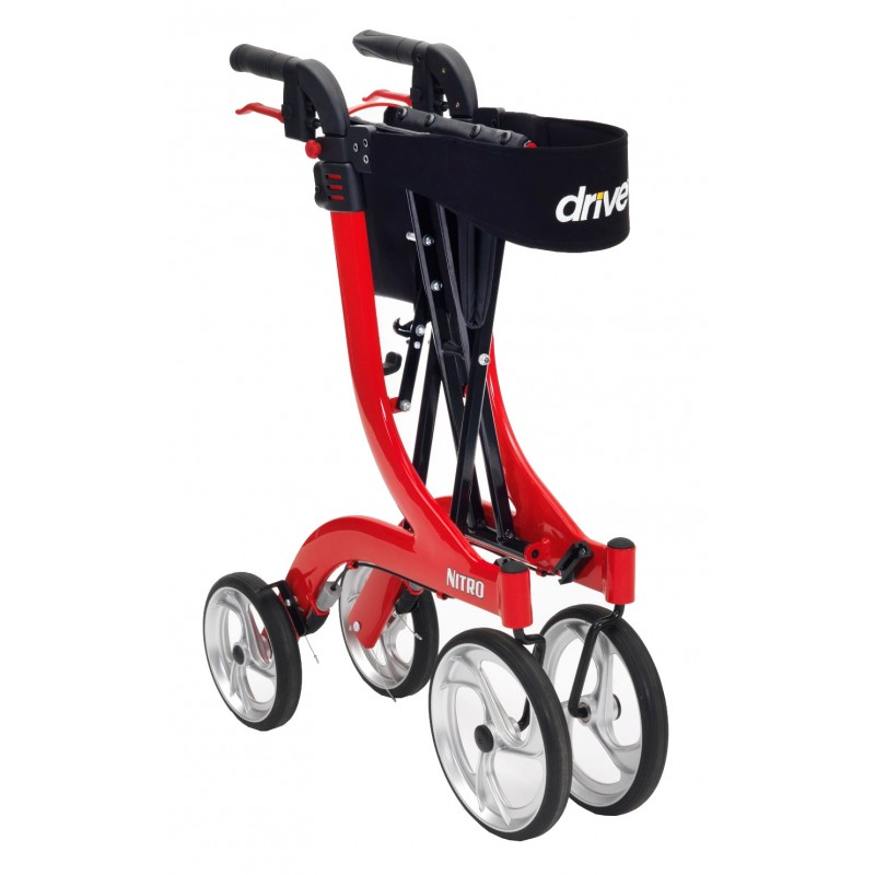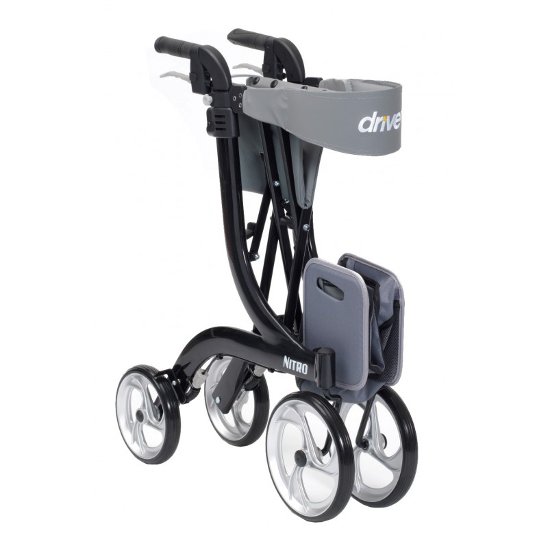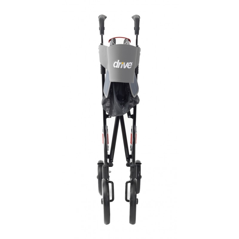 Plastic clip holds the rollator closed when frame is folded for easy handling