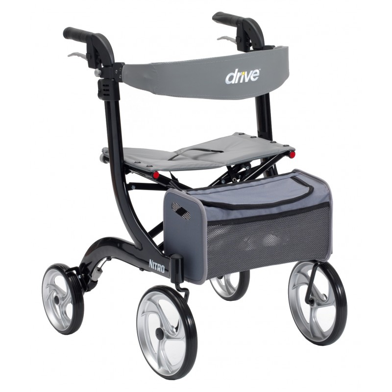 Integral seat handle serves as a useful handgrip for pulling rollator when used as a shopper or for carrying when folded