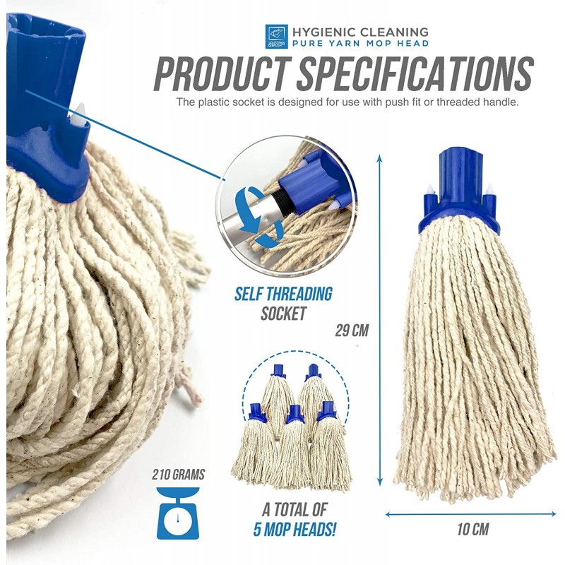 A traditional yarn mop with our Exel push fitting, designed to avoid the mop slipping on the handle whilst wringing. Absorbent PY yarn is suitable for smoother floor surfaces like laminate or lino flooring.